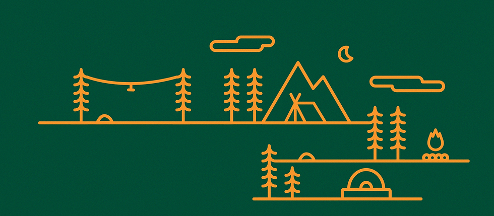 El símbolo de la marca representa dos ideas clave: aventura y naturaleza. Se inspiró en los paisajes, el espíritu explorador del lugar y su entorno montañoso. A partir de sus elementos, desarrollamos un sistema gráfico con íconos complementarios —fogatas, nubes, hornos de raicilla— que enriquecen su universo visual.